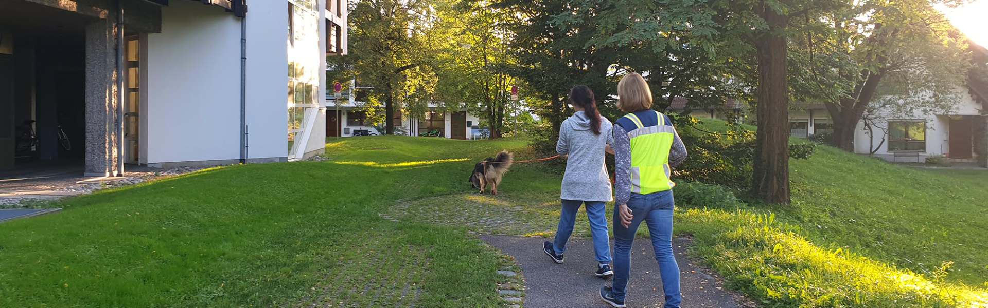 Wir leiten Menschen an, ihren Hund in unserer Gesellschaft zu begleiten, zu fördern, zu führen und zu beschützen. Den Hund zu verstehen, ihm Freiräume zu gewähren und Regeln aufzuzeigen, einander kennenzulernen und aufeinander zu- und einzugehen.