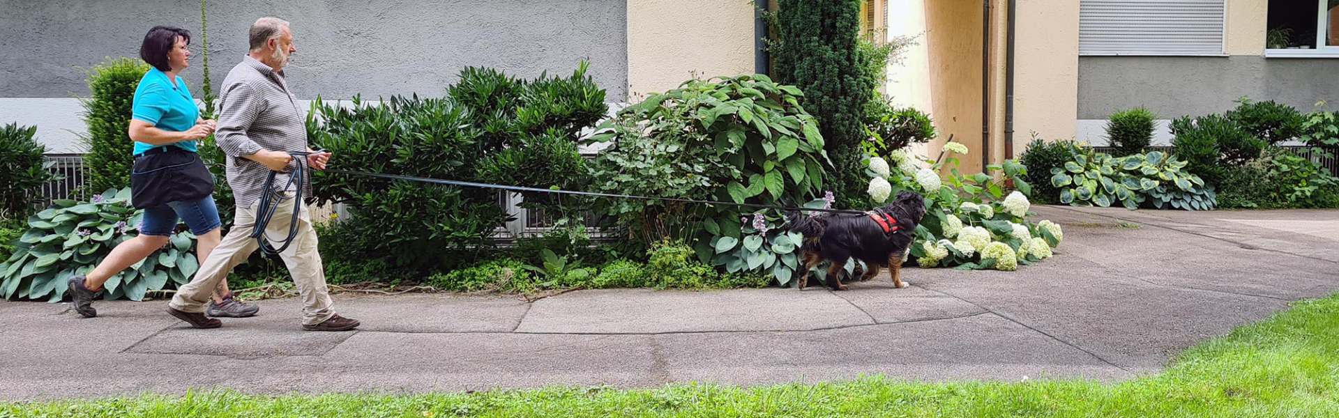 Zu Beginn wird daher das Leinenhandling trocken – ohne Hund – geübt.