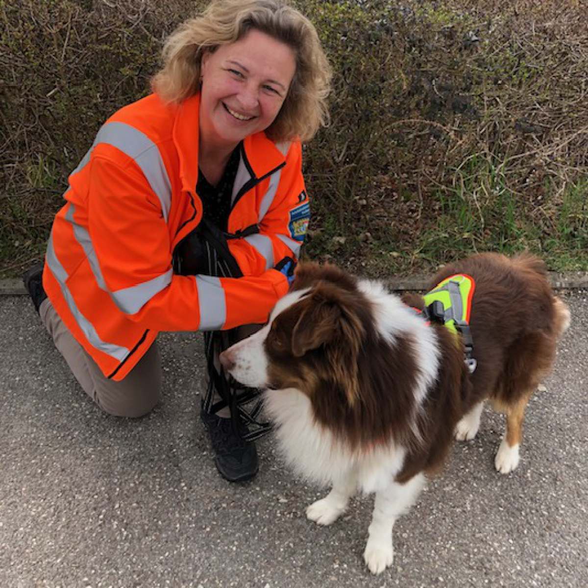 Sie selbst hat im März 2012 die höchste Mantrailing-Prüfung (MT 3) mit ihrer Hovawarthündin Unix von der Hausbergkante erfolgreich abgelegt.