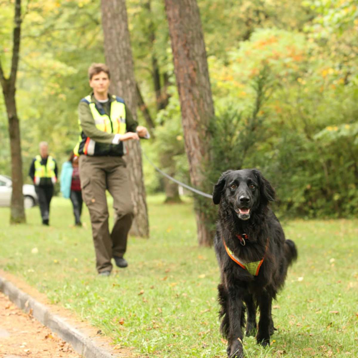 2011 legte ich mit der Hovawarthündin (Valdez von der Hausbergkante) die Prüfung zur MT (Mantrailer Basis) ab. Im Anschluss arbeitete ich bis 2013 mit einer Schäfer-Labrador-Hündin, Josie. Mit ihr bestand ich im August 2012 die MT 1.